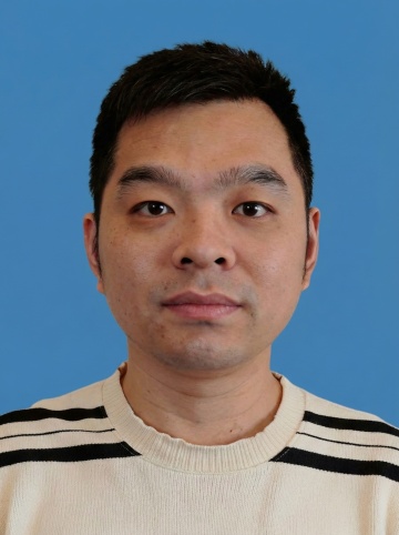 男生白色衬衫蓝底证件照