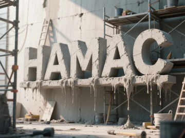 工业感3D粗野主义字体,石刻浮雕风,水泥滴落细节,建筑工地场景,重拟物设计,质感强烈。