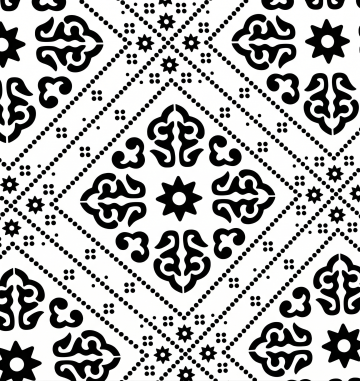 极简主义风格几何图案,白色背景,由大小不一的白色圆形和黑色菱形以渐变密度排列组成,底部圆形较大且密集,向上逐渐变小并稀疏过渡,整体呈现对称、规律的抽象装饰美感,线条清晰锐利,黑白对比鲜明,无任何文字和额外元素。