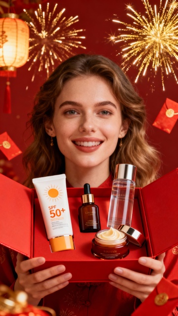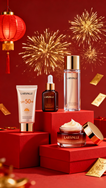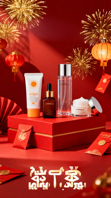 中式古典风格,轻拟物风设计,柔和光影营造浪漫唯美感,国潮风精华液展现简约之美。