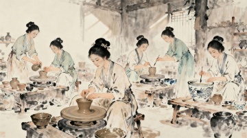 古典中式工笔风,细腻描绘茶叶制作流程,水墨淡雅,尽显传统韵味。