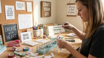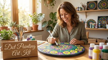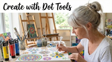 以图中的花卉点画工具套装为元素,欧美女人使用花卉点画工具套装在画画,设计6张跟花卉点画工具套装有关的图,物体主体特征不变,英语,比例 「16:9」