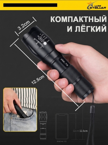 背景是夜晚森林中的地上,一支黑色战术手电筒的特写,一半的体积被雨水浸泡在水中(从地面泼溅而起,激起水花,水花晶莹剔透,折射着光线),背景是森林。
