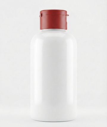 一个护肤品瓶子的产品展示图,采用高清晰度的3D渲染风格,瓶身呈圆柱形,顶部有按压泵头,整体造型简约现代,具有光滑的塑料或玻璃质感,表面有细腻的光泽和轻微的反光效果,瓶身底部有淡淡的阴影投射在白色背景上,营造出悬浮感和立体感,整体画面干净整洁,突出产品本身的形态和质感,适合用于化妆品广告或电商产品展示。