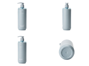 高质感3D渲染的日化包装设计图,四个不同样式的液体瓶身(包含原白色按压泵瓶在内,另三个分别为不同轮廓线条设计,如圆柱形、方形切角、扁圆弧形),每个瓶身采用纯色但互不相同的配色(如浅蓝、淡粉、薄荷绿、米白),均为光滑塑料材质,带有细腻高光与柔和阴影,统一以正面视角排列成整齐的横向队列,背景为纯白色,整体画面干净简洁,突出产品形态与色彩对比,具有清晰的产品展示感和现代简约设计风格。