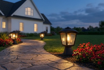 阳光明媚的花园露台餐厅,原木色方形餐桌搭配藤编靠背餐椅,桌面上摆放着白色陶瓷餐具和插满粉色玫瑰的玻璃花瓶,四周被茂密的绿植和盛开的花卉环绕,顶部悬挂着造型简约的白色布艺吊灯,地面铺设浅色防滑地砖,远处可见木质围栏和蓝天白云,整体呈现出清新自然、温馨舒适的田园风格,光线明亮柔和,营造出轻松愉悦的用餐氛围。
