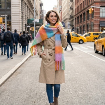 复古格纹大衣搭配简约米色阔腿裤,融合时尚感与商务优雅,质感面料凸显高级品味,整体呈现极简主义美学。