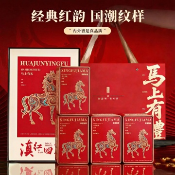 现代简约 + 中国风融合新年海报,视觉核心为金属质感银白马匹,昂首叼流光蓝金麦克风,声波化作科技感渐变光带。右侧错落陈列潮玩、数码、美妆新年限定款,商品缀红金挂饰与 “福” 字印章。背景以渐变红金为底,叠简约几何祥云、烟花线条,角落点缀迷你灯笼。左主右辅构图,线条利落有质感。色彩红金 + 流光蓝,现代感与年味兼具。文字用黑体搭配书法字,突出 “声动新年 好物开抢” 主题与 “限定爆款 直降到底”