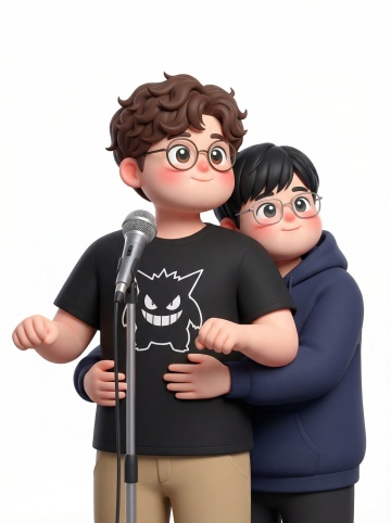 软3D风卡通设计,可爱男孩互动场景,色彩鲜艳,童趣盎然。