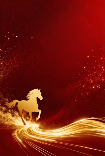 鎏金粒子勾勒骏马轮廓,描边风线条灵动飘逸,红金交织尽显奢华与梦幻,唯美优雅中透出节日祥瑞之气。