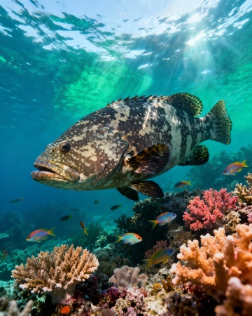 超写实水下场景,深邃的蓝绿色调,底部是纹理清晰的沙质海床,呈现出自然的波浪状起伏。光线从水面上方以分散的放射状光束穿透水体,较原图更柔和且分布更广,光束边缘带有轻微的光晕效果,照亮水中悬浮的微小颗粒,营造出梦幻而宁静的氛围,整体光影过渡自然,色彩和谐统一,画面具有强烈的空间纵深感。