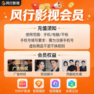 现代简约风格的数字会员服务海报,主题为“12个月影视会员权益”,主色调为紫色与白色渐变,搭配橙色和蓝色点缀。画面中央是一个抽象化的播放三角图标,由多层色彩叠加构成,象征视频内容与科技感。上方有“官方直充”标签,下方标注“填QQ号”“支持手机、PAD、PC端”等文字信息。整体布局清晰,带有轻微光泽和立体阴影效果,适合虚拟商品宣传,突出“年卡”“长期使用”“便捷充值”概念。