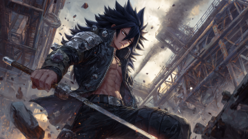 二次元动漫风格立绘,白色背景,一位身着红色与黑色为主色调华丽服饰的女性角色,她有着金色的长发,头戴带有红色宝石的黑色发冠,眼神锐利而自信。上身为黑色紧身露肩上衣,点缀金色花纹,外披红色金边披风,披风边缘有毛绒装饰。下身为高腰红色短裙,裙摆呈不规则层叠设计,搭配黑色过膝长靴,靴筒有金色扣带。手中持有一把燃烧着红色火焰的长剑,剑柄华丽镶嵌宝石。整体造型充满力量感与高贵气质,线条流畅,色彩对比强烈,光影效果突出,人物姿态挺拔,微微侧身,一只手握着剑柄置于身侧,另一只手自然下垂,披风随风飘动,展现出动态的美感,细节丰富,服饰质感细腻,具有浓厚的奇幻战斗风格。