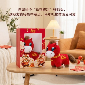 软3D风萌马手办,融合国潮与鎏金元素,喜庆红金配色,卡通可爱造型,手持金元宝,寓意“马上有财”,2026马年贺岁佳作。