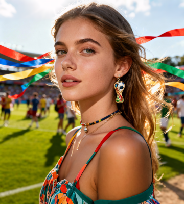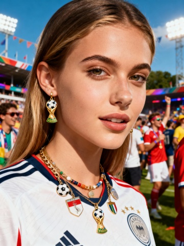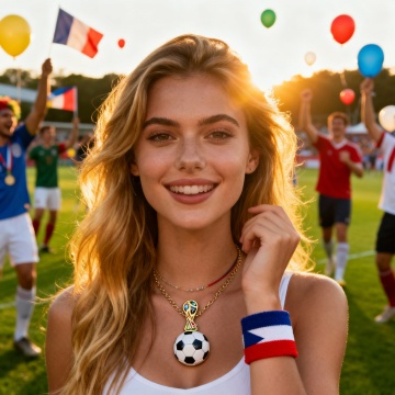 世界杯派对,户外,草坪,趴下,足球氛围,欧美漂亮女生,脸部特写,潮流世界杯首饰,派对,热闹,大师级拍摄