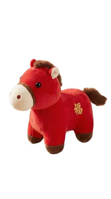 国潮风软3D卡通马抱金元宝,毛发生长质感搭配刺绣浮雕云纹,喜庆红金配色,祥云锦鲤环绕,传递新年暴富好运。