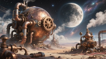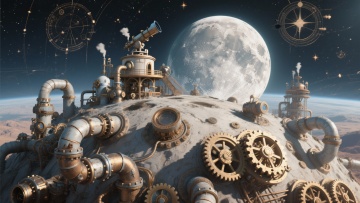 正面视图,一个电影感画面,探险家飞行家的工作室,室内暗调氛围,画面左侧是一个透着冷蓝光的异形窗户(显示外面下着大雨),一张复古的工作台,上面有未完成的奇怪飞行器设计图纸,绘图工具,古董六分仪,台灯,有几个相框放在桌面上,一副飞行员防风眼镜,一个人类头骨,一本翻开的厚厚的使用了很久的记事本,木质小工具箱,古老的航海罗盘和其他各种稀奇古怪的东西,工作台靠墙的墙壁上挂着很多不同尺寸的相框,里面都是各种飞行器的照片,贴着许多标签的远古世界地图,墙壁置物架上几个玻璃瓶装着生物标本,书籍,作旧年代感,超写实风格,窗外的冷调和室内的暖光形成强烈对比,光影和物品质感细节丰富。