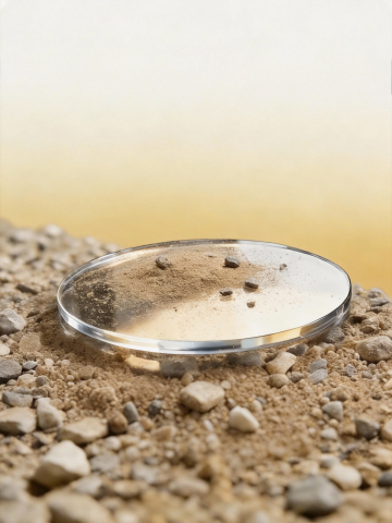 极简主义风格静物摄影,柔和的渐变蓝色背景,前景是细腻质感的白色沙堆,沙堆上放置着一个光滑的圆形金属托盘,托盘呈现冷调的银色光泽,左右两侧各有一块粗糙纹理的灰色岩石,整体构图采用对称平衡布局,光源从左上方柔和照射,在沙堆和物体表面形成清晰柔和的阴影,营造出宁静、清冷、高级的氛围,色调统一为蓝白灰冷色系,画面简洁干净,突出材质对比和光影层次。