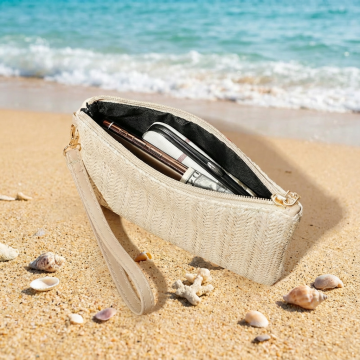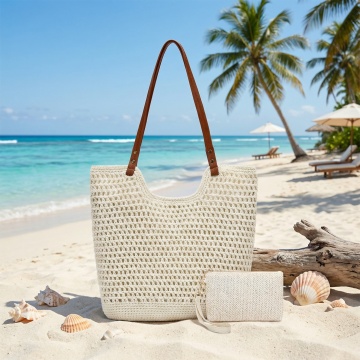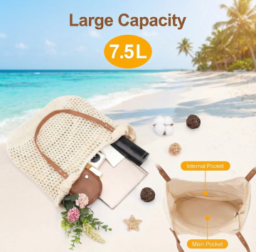 左边这个是沙滩镂空包右边是手机包,帮我生成一张产品介绍图,适用于亚马逊美国站