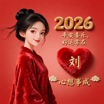 喜庆红金配色,3D大字“2026”鎏金边框,浮雕祥云环绕,烟花绽放,中式年味浓厚,新春贺岁氛围十足。