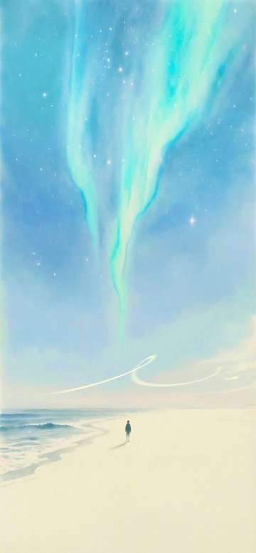 璀璨星光在深邃的宇宙背景中闪烁,呈现出梦幻的水彩风格。画面中,星星以柔和的笔触散布,大小不一,亮度各异,营造出层次感。深蓝色的夜空带有渐变效果,从底部的靛蓝逐渐过渡到顶部的墨黑,其间点缀着淡淡的紫色和粉色星云,增添了浪漫氛围。整体色调温暖而神秘,星光仿佛在流动,给人一种宁静而悠远的感觉。