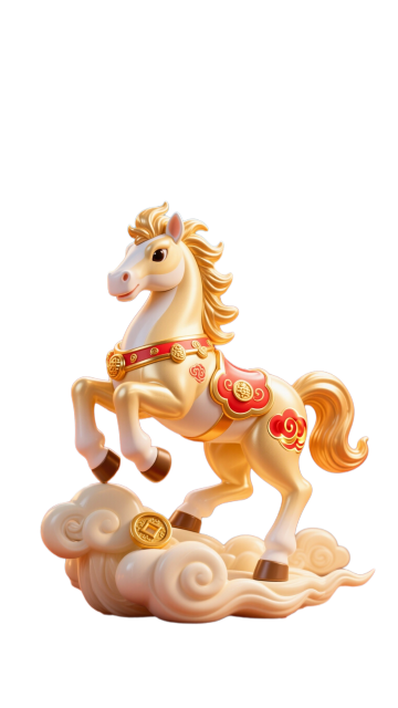 3D 卡通马形象,全身为雪白色,鬃毛和尾巴为银白色,神情优雅温和。正在苏州平江路的石板桥上漫步。马脖子上戴着苏绣荷花纹中国风项圈,背部披着宋锦马鞍,装饰有白、金、青交织的兰花纹样,身上有金色水波纹。背景的平江路水乡灯火阑珊,乌篷船泊在岸边,大部分为傍晚的浅蓝天空。**“马上赏平江”** 白色潮流派对风格艺术字体在上方,字体有高低的节奏和动感,搭配小胶囊标题 “新春水乡攻略”,和装饰英文 “Water town tour in Suzhou”,高级杂志风格排版。所有建筑和主体在下方占比为 30%,大面积留白。