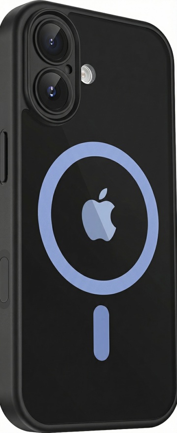 一张智能手机的产品展示渲染图,手机以略微倾斜的角度放置在纯白色背景上,银色金属边框,正面屏幕显示深邃的渐变色彩,上方是明亮的蓝色渐变圆形图案,下方是从深黑过渡到淡粉色的渐变圆形图案,整体呈现出极简、科技感、高端、清晰、光滑的3D渲染风格,光影效果柔和,突出手机的轻薄机身和流畅线条。