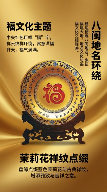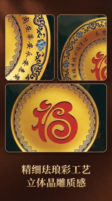 红金配色,浮雕质感,国潮风礼盒设计,融合祥云、灯笼与“福”字元素,尽显中式喜庆与鎏金华美。