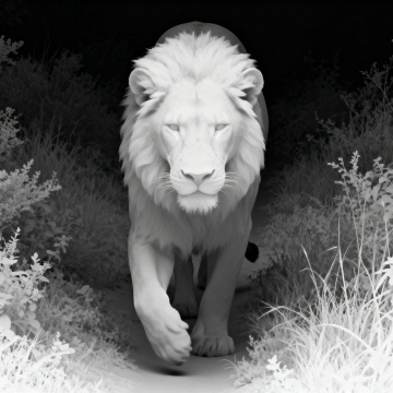 一幅黑白线条画,描绘了一只蜷缩着的狼,它的毛发细节丰富,姿态显得安静而警觉,背景为纯白色,突出主体的线条艺术风格。