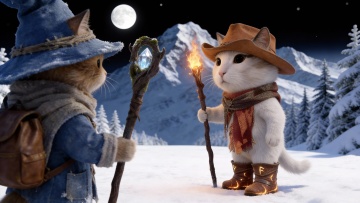 复古感与光影交织,拟人风小猫戴眼镜穿皮衣,3D质感中探索古老地图,油画风呈现故事感十足的冒险瞬间。