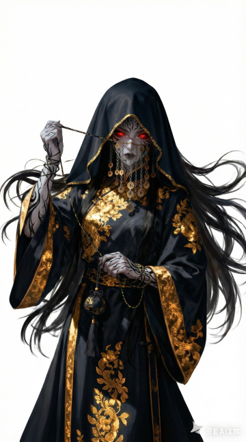 按照参考图角色形象,生成2.5D画风,中式诡异风格。2.5D 建模风格,《神秘复苏》同人年轻男性角色,五官精致细节拉满,中式诡异风格,参考人物姿势,构图混乱诡异,中式插画风格,高对比度,阴暗压抑氛围。