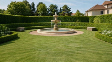 现代简约风格的庭院,阳光明媚的白天,晴朗的蓝色天空点缀着几朵白云,庭院内有一栋两层现代简约风格的白色住宅,住宅外立面有大面积玻璃窗和深色框架,木质大门,门前有几级浅色石阶,周围种植着修剪整齐的绿色灌木、高大的树木和草坪,草坪上有石板小径,整体光影明亮,色彩清新自然,营造出宁静舒适的氛围。