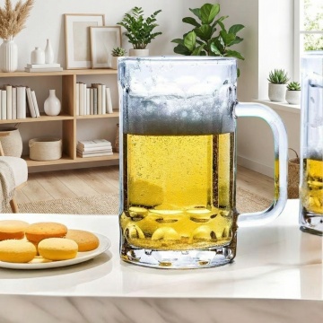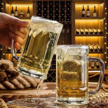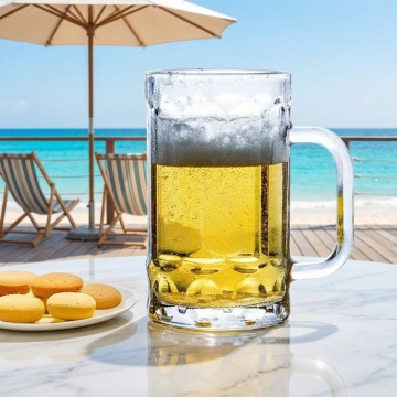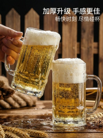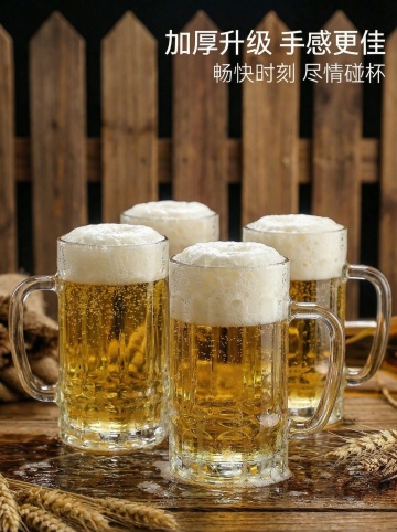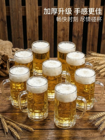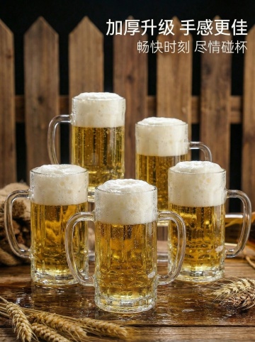 六个不同造型和角度的冰镇啤酒杯系列素材集合,每个杯子都装满金黄色的啤酒,顶部有厚实细腻的白色泡沫,杯壁上布满晶莹的水珠,展现出高度写实的质感和光影效果,背景为纯色,所有元素规整排布,保持统一的色彩风格和视觉语言。