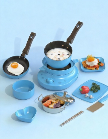 软3D风萌兔电饭煲,拟人化设计,粉嫩色调搭配可爱表情,营造温馨趣味厨房氛围,清新舒适,充满卡通感与生活温度。