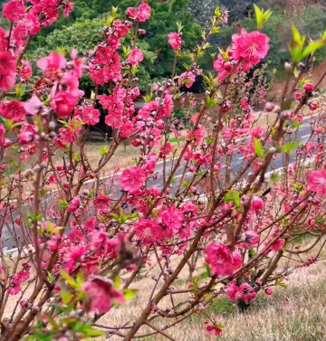 水墨风与实景融合,雪中红梅映衬古典亭台,朦胧静谧,尽显中式优雅与文艺意境。