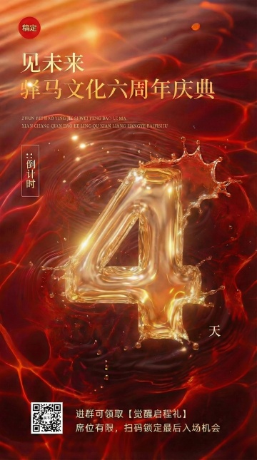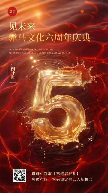 企业2026马年年会主题海报,深邃红色渐变背景,叠加微光粒子效果,左下角有抽象化的奔腾骏马,四蹄踏金色光浪奔腾向前,融入科技感光影线条,极简现代风格,兼具正式感与视觉冲击力,骏马象征企业开拓进取,光浪代表发展势能,红金配色传递庆典喜庆与商业高级感