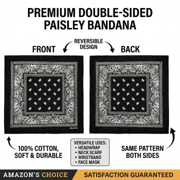 这是一款方巾,帮我生成一张介绍图,介绍产品的正反面都有图案,适用于亚马逊美国站点