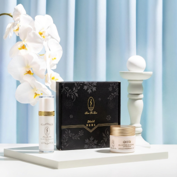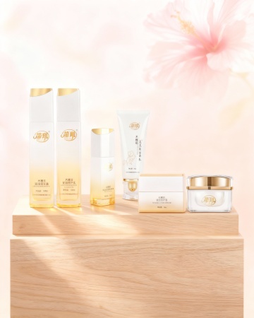 中式古典风格,轻拟物风设计,柔和光影营造浪漫唯美感,国潮风精华液展现简约之美。