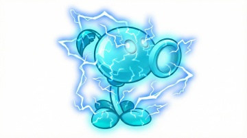以这个植物角色为原型,生成不同变异的风格的属性形态,分别是暗黑、寒冰、烈火、剧毒、机械、雷电的风格,白色背景,横版,卡通的画风