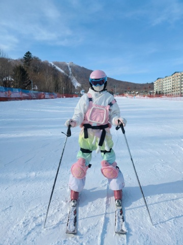 软3D风格的卡通滑雪少女,粉嫩梦幻背景,可爱灵动姿态,粘土质感渲染,充满节日欢愉氛围。