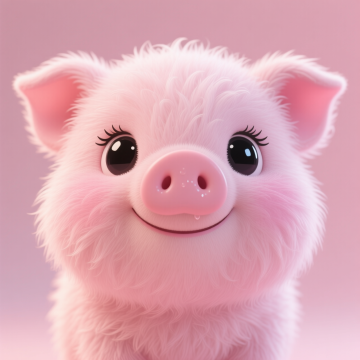软3D风格的拟人小猪,毛发生长质感细腻,手持购物袋与卡片,置身粉色梦幻场景,充满甜美与可爱感,节日氛围浓厚。