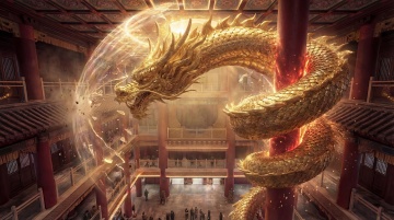 赛博朋克风融合国潮元素,鎏金巨龙腾跃于霓虹都市之上,3D混合材质的“2026”悬浮发光,烟花与电路板图案交织,无人机群环绕,未来感与喜庆感并存。