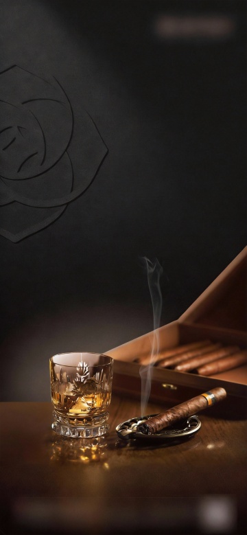 在豪华游艇的甲板上,黄昏时分,琥珀色的威士忌酒液盛在带有菱形切割纹路的水晶杯中,杯内漂浮着大块透明冰块,旁边是一瓶带有黑色瓶盖的方形玻璃酒瓶,酒瓶和酒杯置于深色木质甲板上,散落着几块备用冰块,背景是渐变的橙黄色晚霞与深蓝色海面,温暖的侧逆光从海面方向照射过来,在酒液和冰块上形成璀璨的高光和金色反光,营造出奢华、惬意而又带有一丝神秘的氛围,整体采用写实主义风格,光影对比强烈,细节质感丰富,色彩以琥珀色、深蓝色和金色为主,构图采用经典的产品静物布局,突出威士忌的醇厚与优雅。