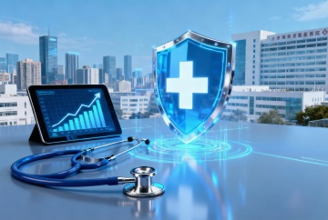未来感与科技感交织的3D玻璃风设计,透明盾牌融合医疗十字,象征健康守护;轻拟物风格呈现虚拟现实场景,搭配法典与天平,传递公正与安全理念。