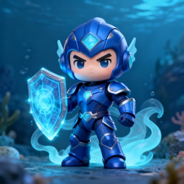 梦幻卡通风格,微缩艺术展现海边夜景,灯塔与小人营造温馨童话氛围。
