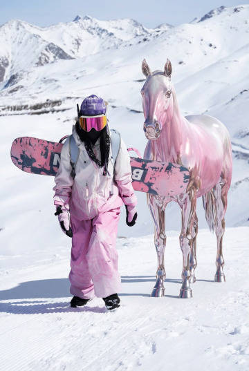 软3D风格的卡通滑雪少女,粉嫩梦幻背景,可爱灵动姿态,粘土质感渲染,充满节日欢愉氛围。