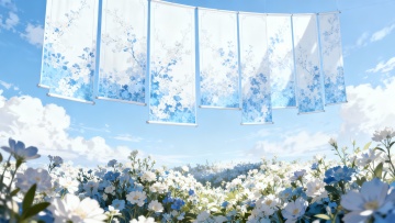 一幅动漫风格的天空背景图,画面主体为纯净明亮的湛蓝色天空,天空中点缀着大量形态各异、蓬松饱满的白色云朵。云朵分布于画面的左上、右上及底部区域,呈现出自然舒展的姿态,部分云朵边缘带有淡淡的蓝紫色阴影,增强了立体感。整体色彩清新明快,光影柔和,光线从云层间隙洒落,营造出宁静、开阔、充满希望的氛围。画面采用了典型的二次元插画技法,线条平滑流畅,色彩过渡自然,具有鲜明的动漫美学特征,给人以轻松愉悦的视觉感受。