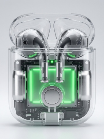 6款不同材质与造型的无线耳机及其充电盒组成的系列产品集合,在纯白色纯色背景上以规整的网格状排布。每款耳机都保留核心的入耳式耳塞与充电盒开合形态,但具有完全独特的设计造型:1. 高光泽钢琴漆材质,棱角分明的几何切割充电盒,耳塞表面有精细的菱形切割纹路;2. 哑光磨砂金属材质,圆润流畅的鹅卵石造型充电盒,耳塞带有金属网面装饰;3. 透明亚克力材质,半透明充电盒可看到内部结构,耳塞采用渐变色彩设计;4. 编织纹理布艺包裹材质,方形充电盒带有缝线细节,耳塞表面有细密的针织纹路;5. 木质纹理材质,圆角矩形充电盒搭配原木色,耳塞表面有自然木纹肌理;6. 荧光霓虹材质,不规则多边形充电盒,耳塞带有发光灯带边缘,整体呈现科技感十足的未来主义造型。所有产品均采用简约无Logo设计,保持一致的光影效果,柔和的顶部光源,轻微的底部阴影,突出产品的材质质感与设计细节,形成统一而富有变化的系列感。