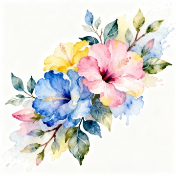 水彩风格插画,以纯白色为背景,画面中是一簇自然垂落的紫藤花,藤蔓呈优雅的曲线延伸,点缀着多朵盛开的紫藤花,花瓣呈现淡雅的紫色渐变,花心为明亮的黄色,搭配深绿色的椭圆形叶片,叶片边缘有细致的锯齿纹理,整体色调清新柔和,笔触保留了水彩特有的透明晕染效果和自然的水渍纹理,藤蔓、花朵和叶片的布局疏密有致,呈现出轻盈灵动的自然美感。