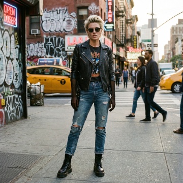 现代感十足的city pop风街拍,时尚穿搭与都市背景完美融合,展现潮流魅力。